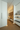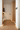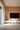 Стену органично дополняет скрытая дверь в мастер-зону. Она почти не заметна: линии панели продолжаются без разрывов, создавая ощущение монолитной поверхности. Такой приём позволяет сохранить чистоту формы и одновременно добавить функциональность.